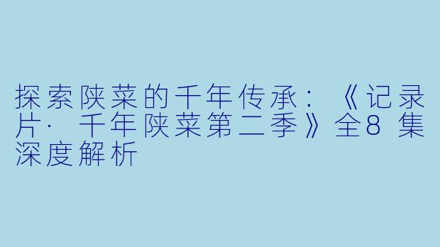 探索陕菜的千年传承:《记录片·千年陕菜第二季》全8集深度解析