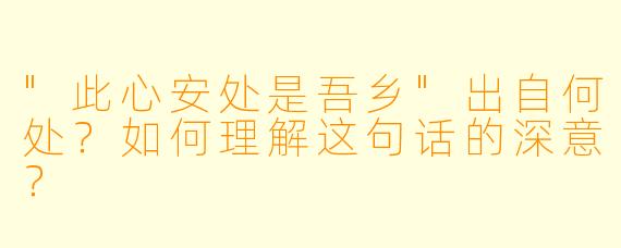 "此心安处是吾乡"出自何处?如何理解这句话的深意?