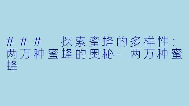 ### 探索蜜蜂的多样性:两万种蜜蜂的奥秘