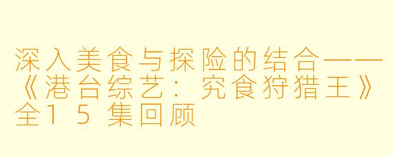 深入美食与探险的结合——《港台综艺:究食狩猎王》全15集回顾
