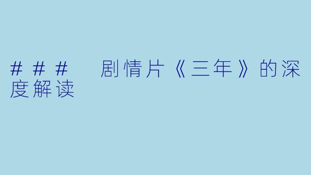 影片通过细腻的情感描绘和真实的生活场景,引发观众对自己人生的思考。导演巧妙地运用了音乐与镜头的切换,使每一个情节都充满了张力与情感的共鸣。《三年》不仅是一部电影,更是一段每个人都能感同身受的心路历程。通过这部片子,我们不仅见证了主角的蜕变,也反思了自己与时间的关系。